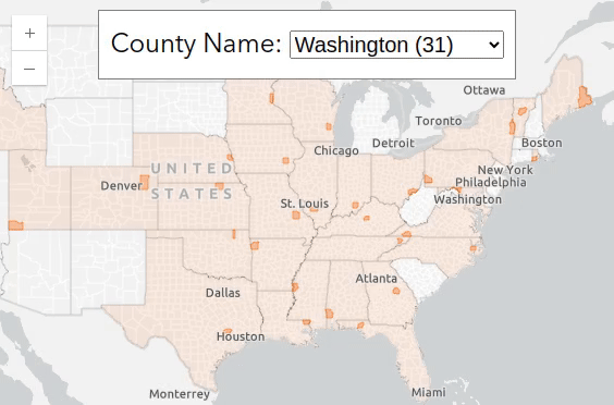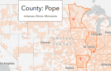 Then I took that data and built it into a few interactive maps. First showing the states and county locations for each of those common names: